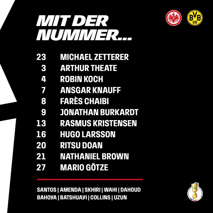 法兰克福替补:40-考昂-桑托斯、5-阿曼达、15-斯希里、17-瓦希、18-达胡德、19-巴霍亚、30-巴舒亚伊、34-纳姆迪-科林斯、42-乌尊